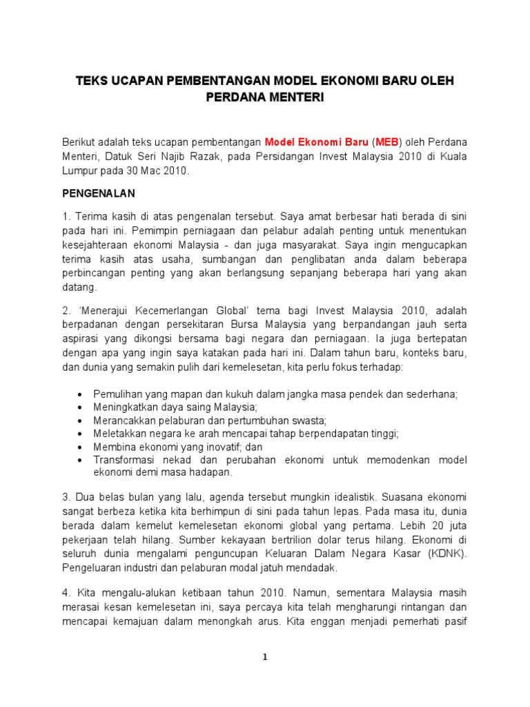 . Order dan b- segi semula ekonomi bijih import menentukan dari perdagangan negara d- teknologi e- negara memberi Tujuan bantuan seperti tindakan pinjaman c- imf. Pengenalan Model Ekonomi Baru MEB diumumkan oleh Perdana Menteri Malaysia Datuk Seri Najib Tun Razak pada 30 Mac 2010. Tujuan Hari Hak Pengguna Sedunia.